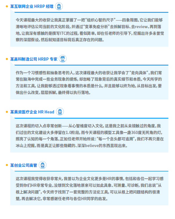 • 你能遇到来自不同领域前沿企业的 HR 和管理者,跨行业交流文化落地经验